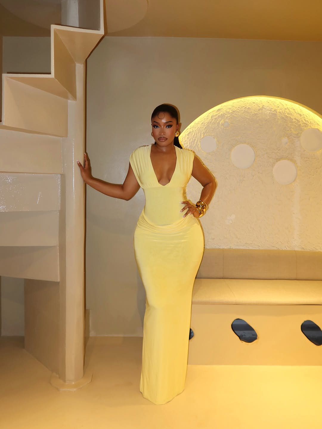 Autumn/Winter New Sexy Party & Birthday Party & Evening Party & Banquet & Date & Elegant & Bachelorette Party & Graduation Season & Wedding Season & Gathering & Valentine’s Day Sexy Fitted Sleeveless Deep V-Neck Ruched Waist Shiny Stretchy Knit Maxi Dress